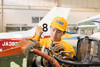整備士養成コースでは航空機整備に必要な知識、基本技術を学び国家資格取得を目標にしています。