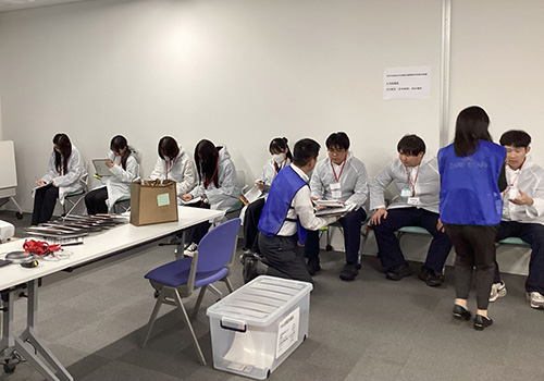 旅客機と海上保安庁の航空機が滑走路上で衝突し、5名の方が犠牲となった事故です。今回の訓練は、事故の教訓を活かすため、初めて航空機同士の衝突事故を想定されたそうです。学生たちは、航空機に見立てた大型バスから航空会社係員の指示に従い、避難をしました。