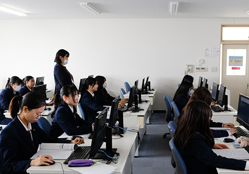 エアポートビジネス科では、ANAで実際に使用されている航空券の予約・発券システムを活用した授業を行っています。