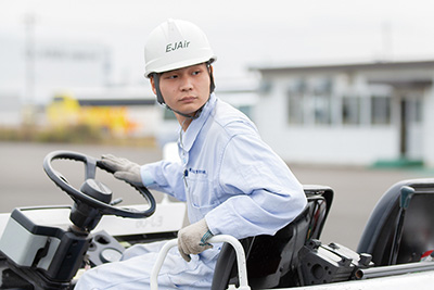 現在は東京国際空港(羽田)で航空機の搭載業務に携わっており、トーイングトラクター車での搬出・搬入や安全監視業務、センダー業務等を行っています。「センダー業務」は航空機の出発時にパイロットに向けて問題がないことを伝える仕事で、滑走路へ向かう航空機を見送る瞬間はとてもやりがいを感じます。学生時代は実習や資格の勉強で苦戦することもありましたが、クラスメイトや先生方と一緒に諦めずに乗り越えられた経験が、日々の業務に活きています。これからも常に先を見据えた行動で航空機の安全運航を支援する事、さらに上位の資格を取得して携わることができる業務の領域を広げていく事にチャレンジしていきたいです。