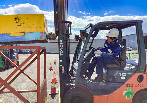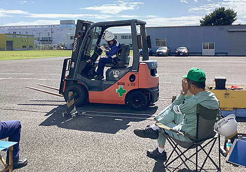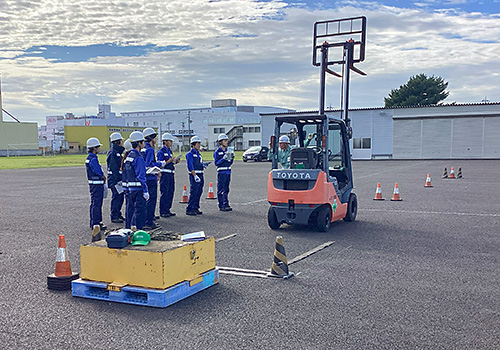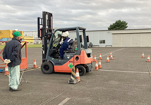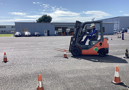 初日は学科講習を受けた後、学科試験に挑戦。2日目からは実技講習が始まり、始業点検や走行、荷役操作などの訓練を行いました。そして最終日には、いよいよ実技試験に挑戦しました。