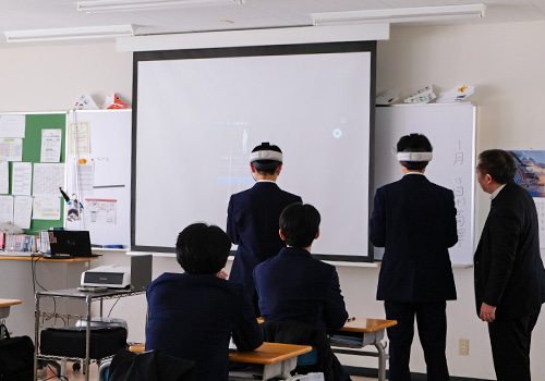 一方のVR機器はプロジェクターでスクリーンに映し出されていたため、操作の様子がクラス全員に丸見え。スイッチや開閉バーをうまくつかめない様子に、自然と教室から笑い声が上がりました。