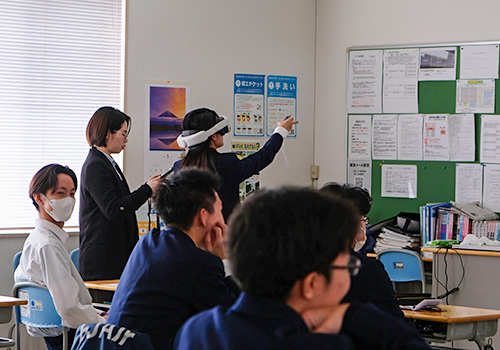 学生たちはこのVRを使って、安全確認や指差し確認など、現場で必要な基本動作を身につけるトレーニングがどのように行われているのか学ぶことができました。