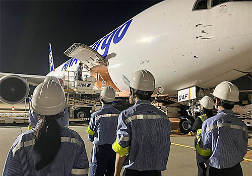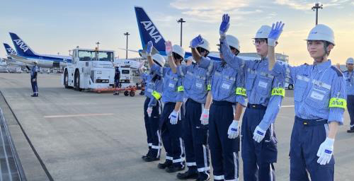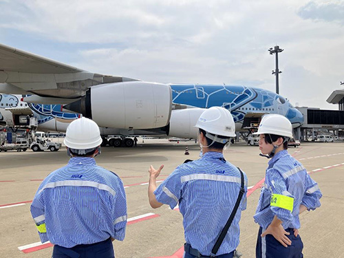 学生たちは、グランドハンドリングの現場で旅客機や貨物機(貨物の輸送に特化した航空機)の貨物の取り扱いや、その荷物の搭降載(一部積み込み体験)、プッシュバック業務の見学、旅客をお見送りするグッバイウェーブなど、さまざまな業務を体験させていただき、貴重な経験を積むことができました。