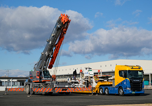 12月18日(木)、そのハイリフトローダーが、はるばる鳥取空港から当校へ輸送されてきました。