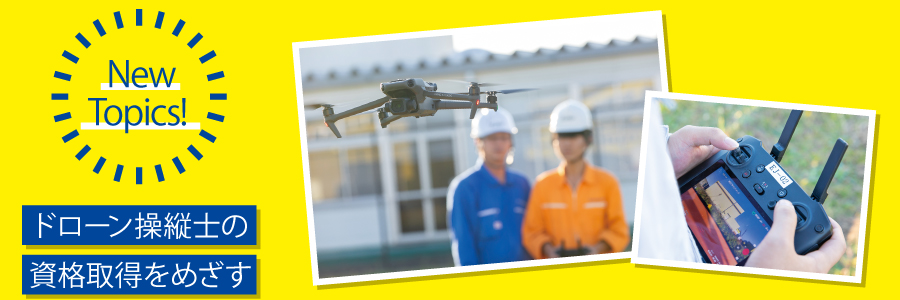 現在幅広い業界・分野で活用されているドローン(無人航空機)は航空業界でも導入されつつあります。そのため本校でも、ドローンの安全運航に関する法的ルール・飛行するための知識と操縦技術を学び「無人航空機操縦技能証明証」「無人航空機安全運航管理者証明証」の取得をめざします。