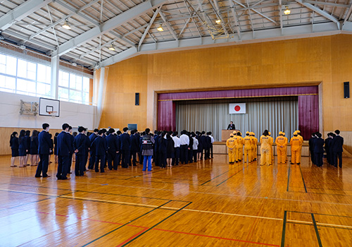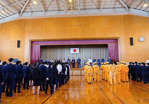 集会では教員の紹介が行われたほか、在校生代表から新入生へ歓迎の言葉が贈られ、新しい学校生活のスタートにふさわしい時間となりました。