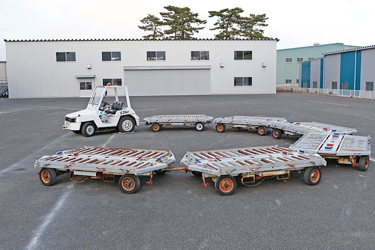 トーイングトラクター、ドーリー、ハイリフトローダー、ベルトローダー、ドーリーなど地上支援機材の実習を行います。